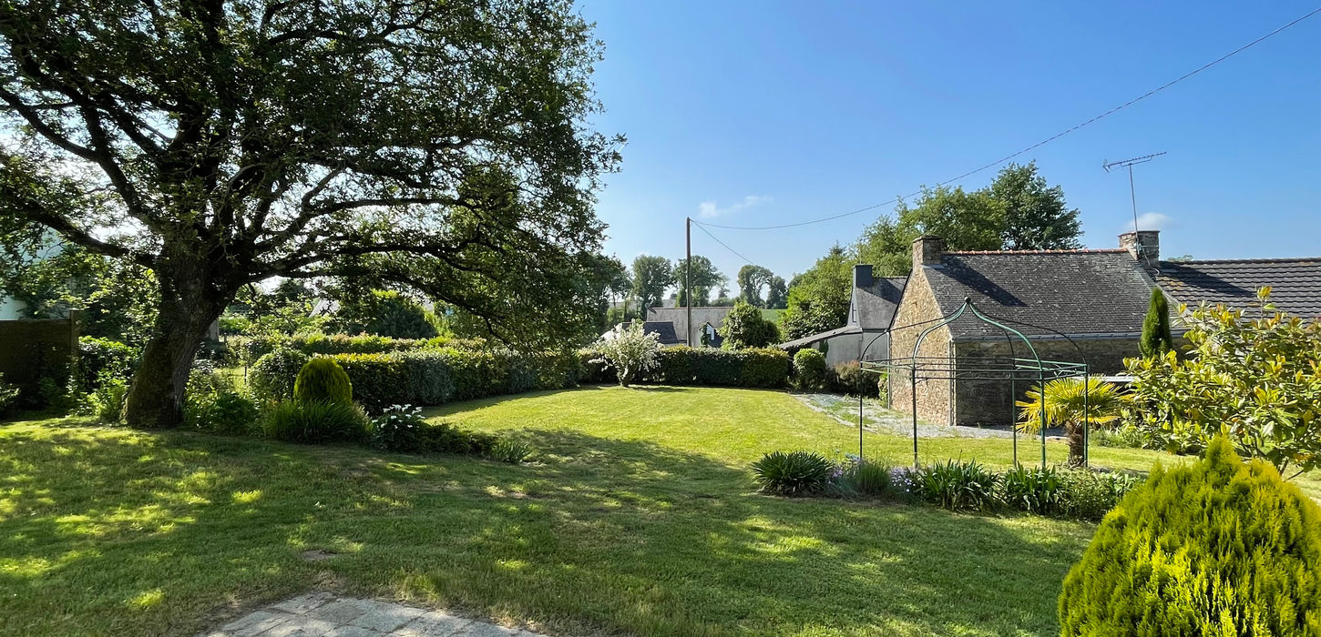 Très beau jardin clôturé de 1400 m2, sans vis à vis, arboré et fleuri, sur lequel est édifiée une grange en pierres sous ardoises d'une surface d'environ 30 m2.
